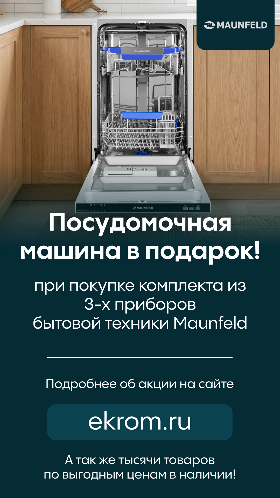 Получи Посудомоечную машину Maunfeld в подарок при покупке комплекта техники! Подробности